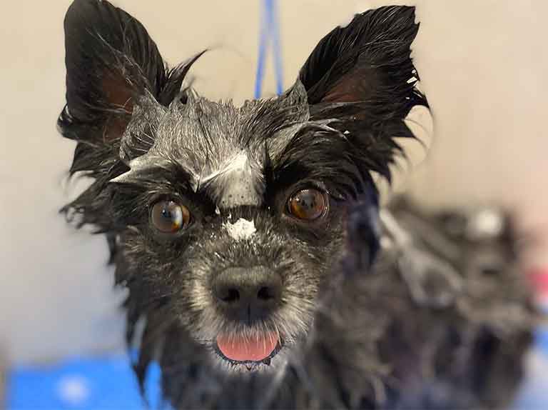 Clean face, shave paw pads, sanitary Shave, clip and file nails, pre-bath brush out (and dematting if necessary), check for fleas ,ticks, infections, lumps, bumps, hot spots, skin lesions, and any abnormalities from nose to tail that may need medical attention, bathed using specialized shampoos according your pets needs(On the face we use no tear Shampoo),teeth brushing, express anal glands, apply moisturizer/conditioner, dry ,finish with a thorough brushing and combing , apply a finishing spray and colorful bow or bandanna(optional).